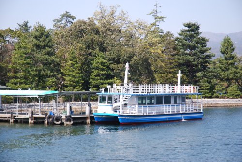 下の船着き場には、こんな船も泊まっていました。すこし、まけておきますから乗りませんかと誘われました。でも、天気が良かったのでレンタサイクルで天橋立を渡りました。天橋立が通行できるとは知りませんでした。