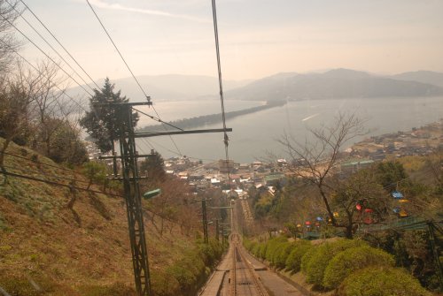 リフトに乗って笠松公園へ。平行してケーブルカーも走っています。