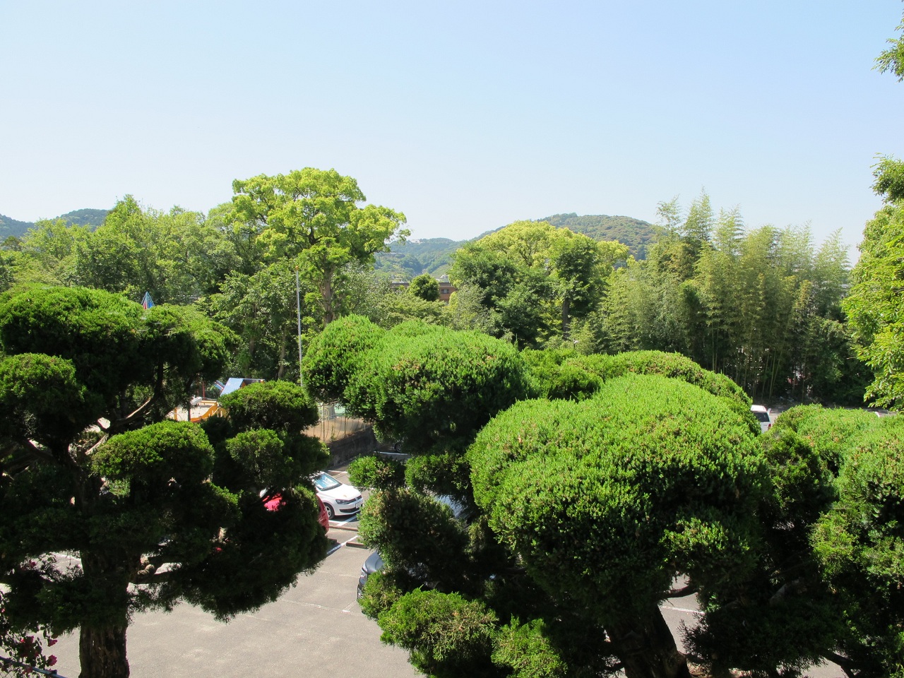 幼稚園の2階の窓から。遠くの山は蹴上のあたりです。