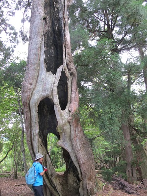雷杉は雷が落ちて焼けて中はがらんどうですが、生きています。